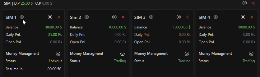 By defining strict risk management rules, traders can enforce discipline in real time. If any predefined rule is breached, the account is automatically locked for the day (or for a specified duration), ensuring adherence to the trading plan and preventing emotional decision-making.
