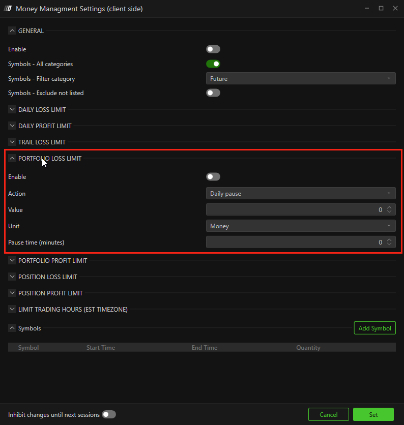 Any changes made to risk settings will only apply on the next trading day.