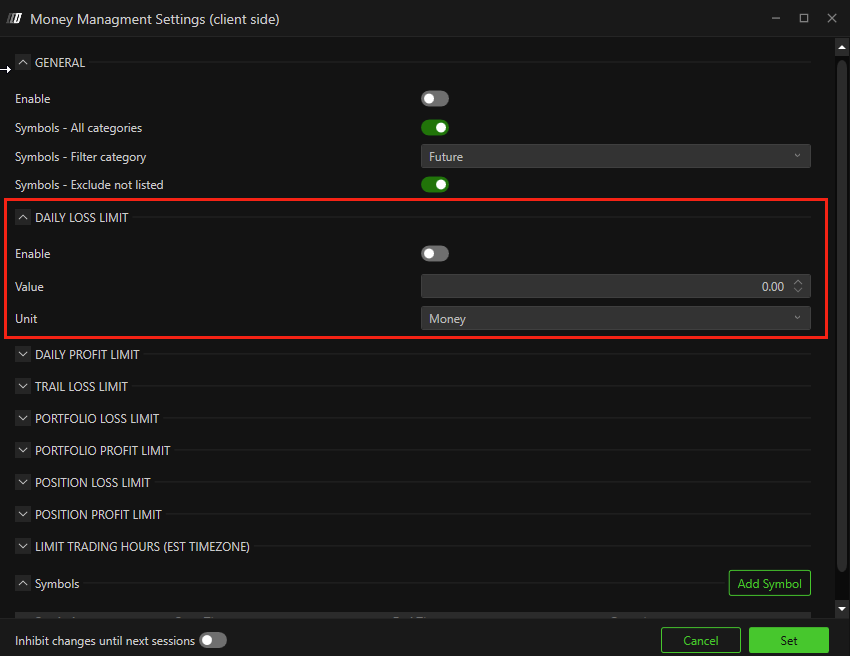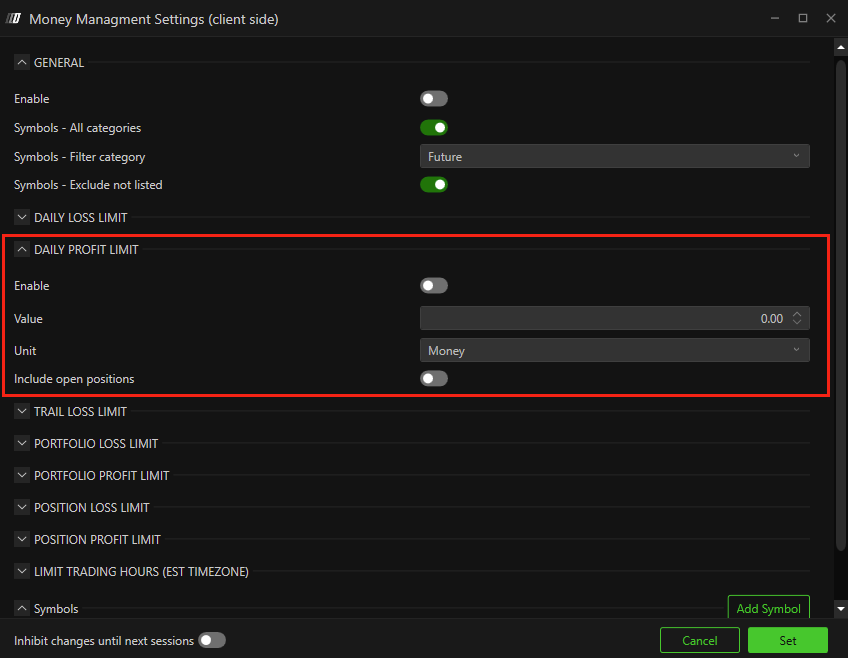 Daily loss & profit limits