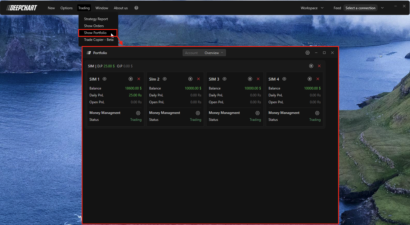 In the Overview tab, you can see all accounts connected to Deepchart.