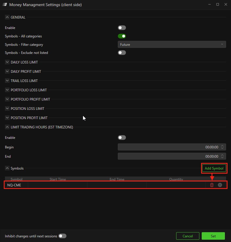 Add or remove symbols allowed for trading.