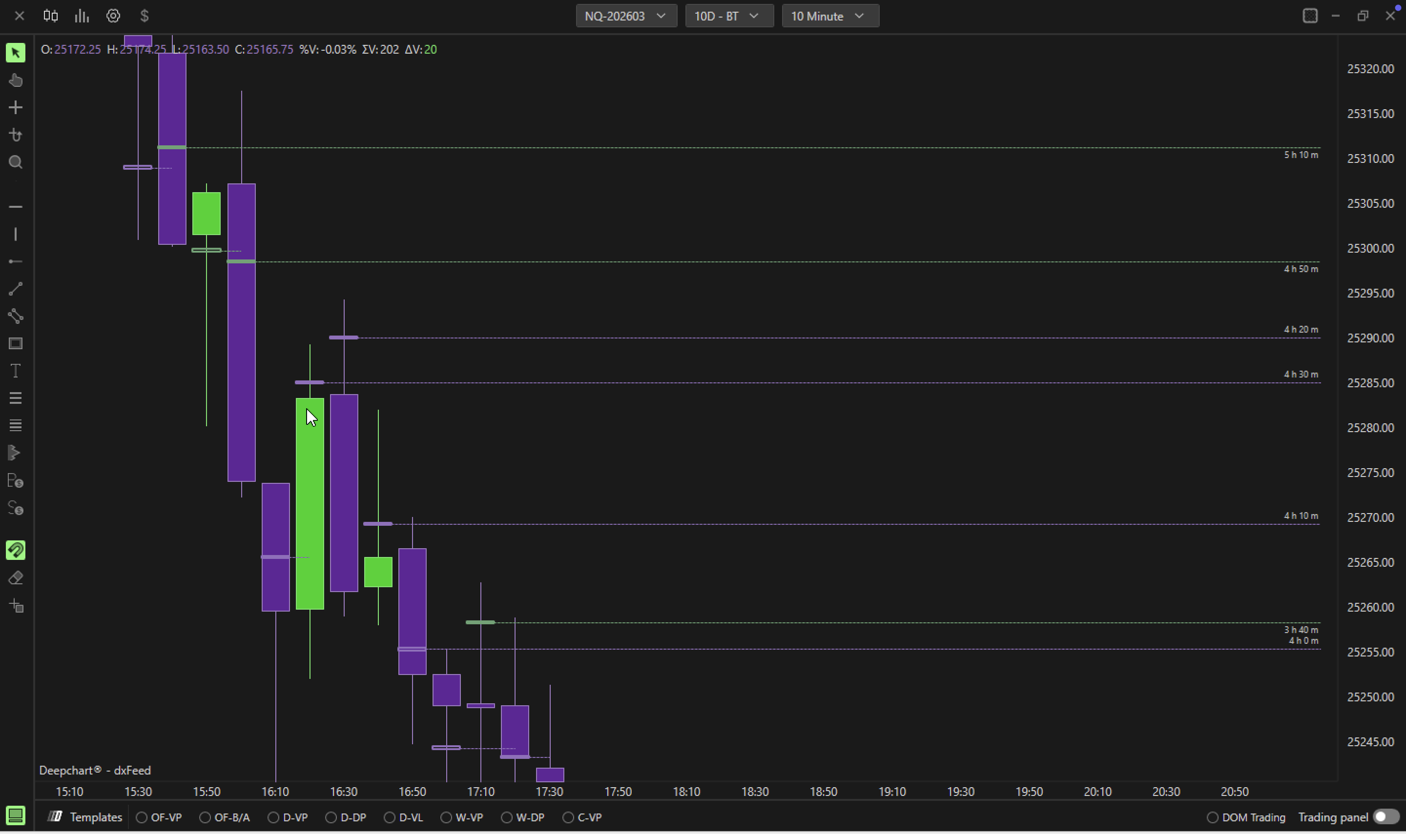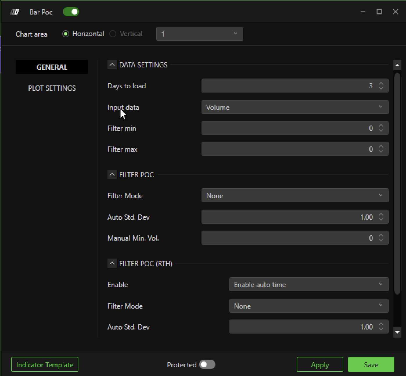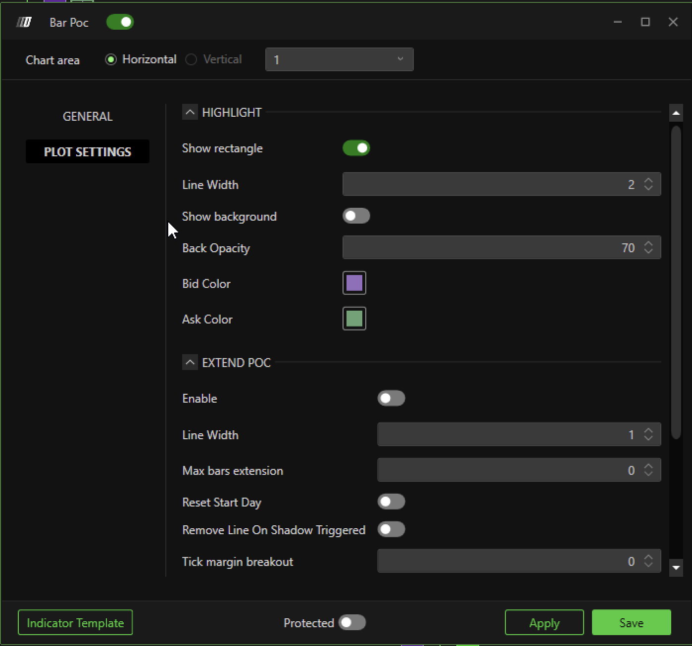 - Enable: This button Enable/Disable a line form the POC area of the candle to the right end of the chart.