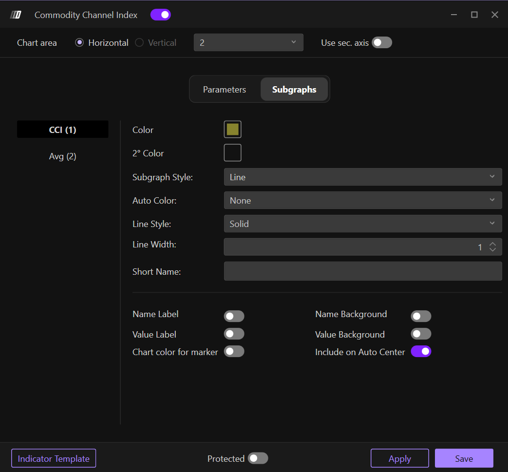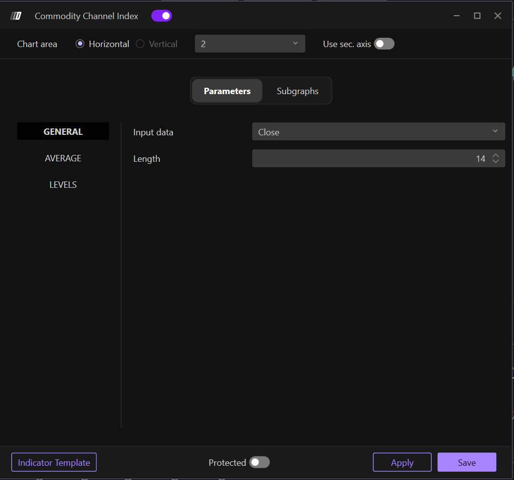 Clicking on the indicator settings icon will open its configuration window, within which you can make several choices regarding the indicator's functionality.