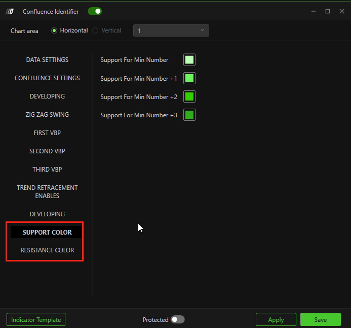 Customize the colors of support and resistance zones based on the number of confluences forming each zone.