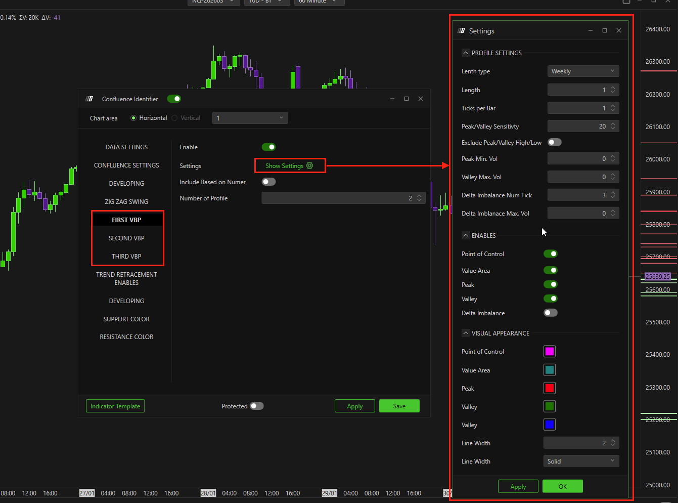 You can enable up to three separate Volume By Price profiles.