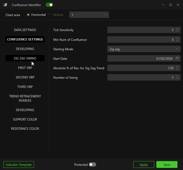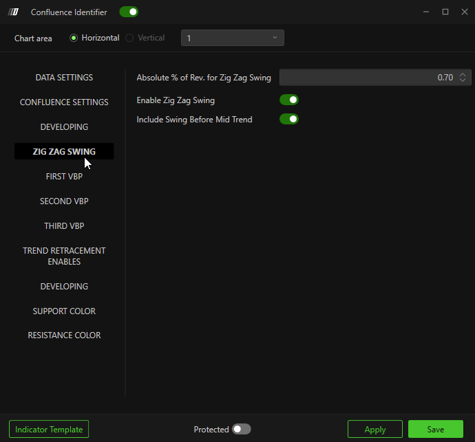 The second Zig Zag identifies swings used for confluences and should use a smaller percentage to include minor swings.