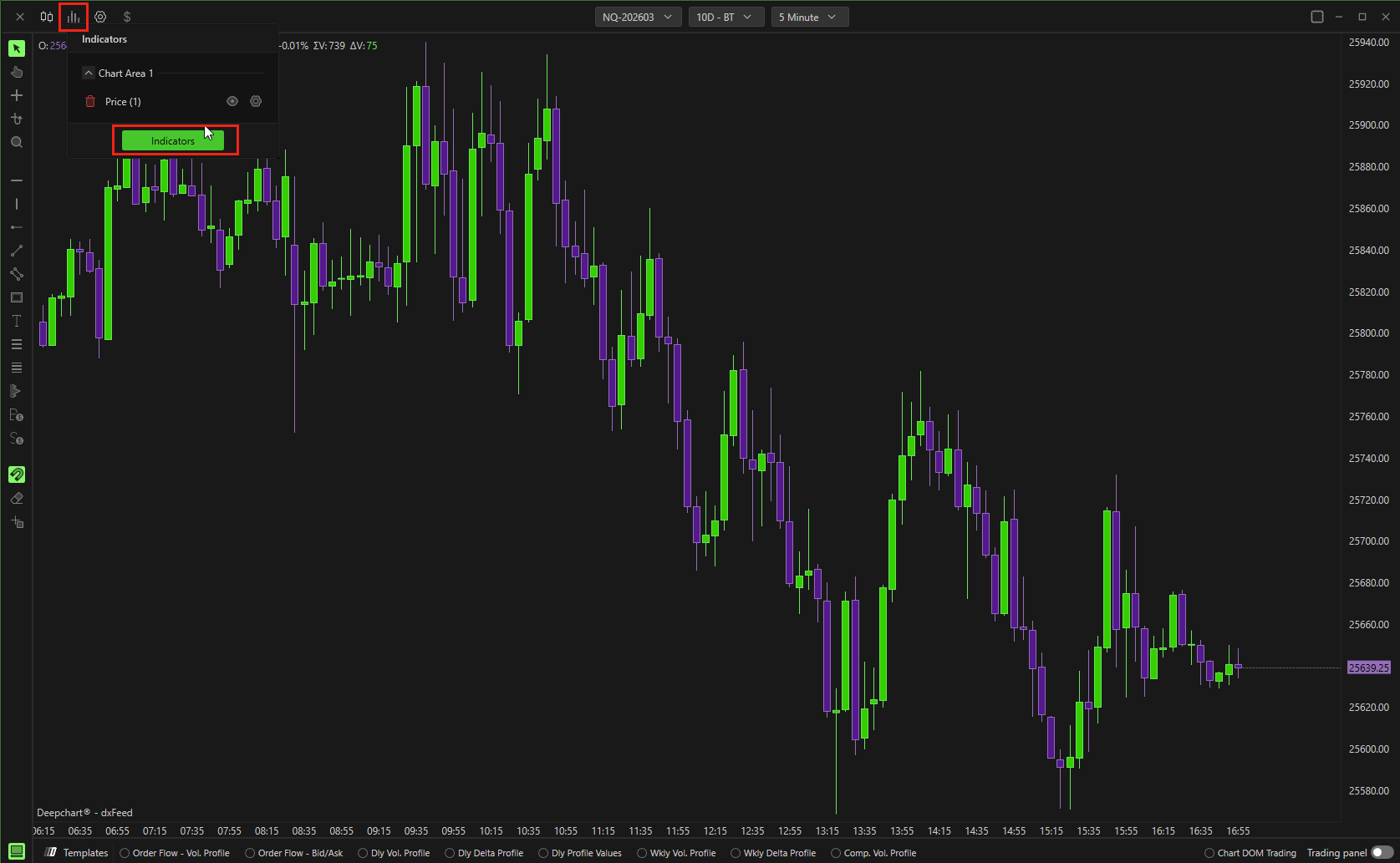 Open the Indicators menu