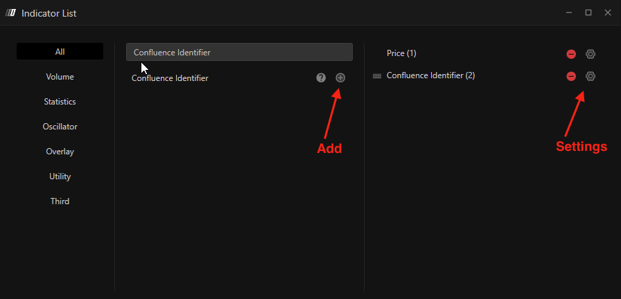 Click the Settings icon to configure the indicator