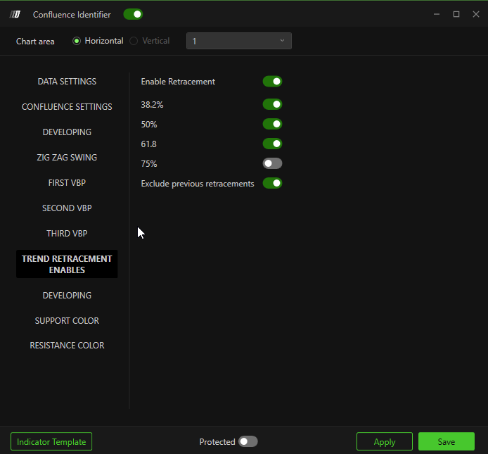 Adds retracement levels from the main swing to confluence calculations: