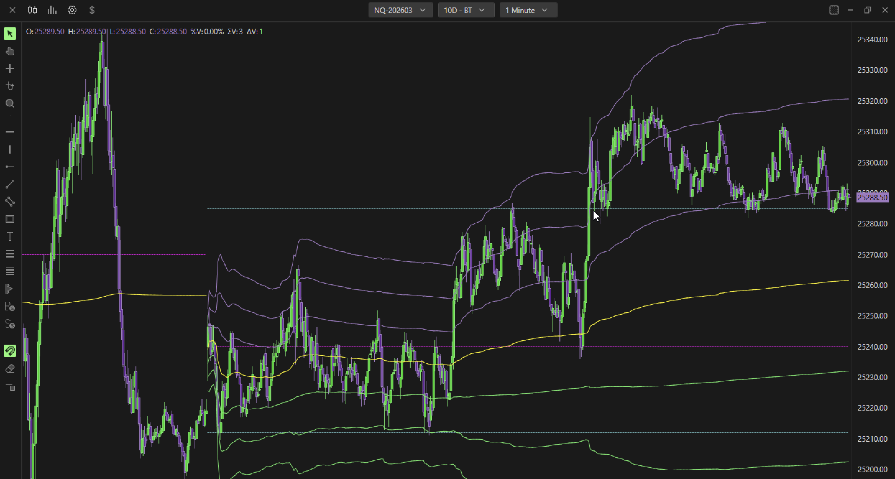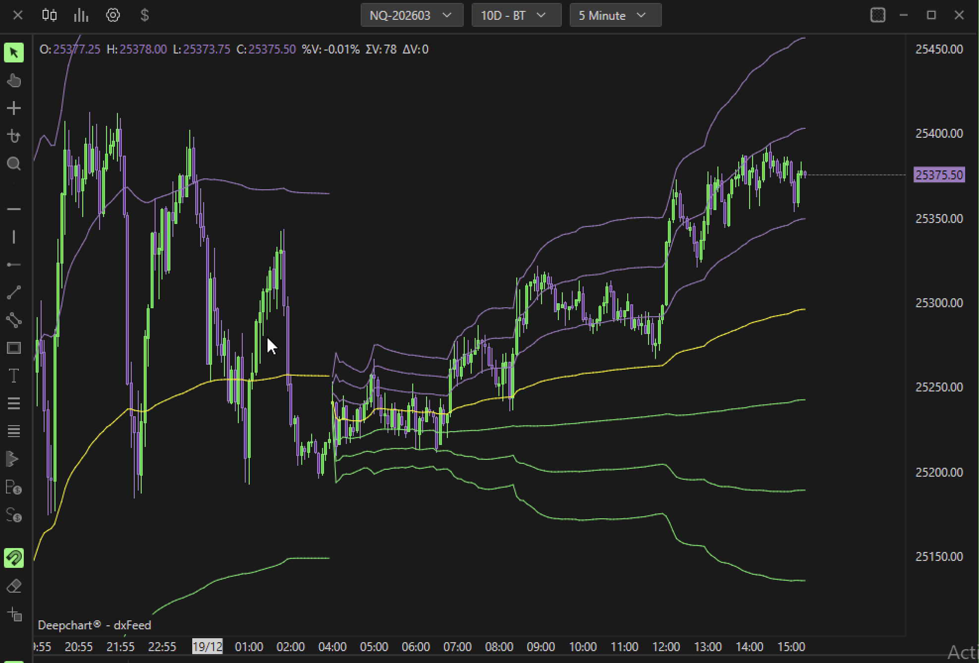 The Standard Deviations of the VWAP are a way of measuring the volatility of prices relative to the volume-weighted average value. Standard deviations are bands that are plotted above and below the VWAP to identify the average distance of prices from the mean value. Each standard deviation indicates a "band" of the price range, providing traders with an idea of how far the price is deviating from the VWAP by going to contextualize Premium and Discount zones.