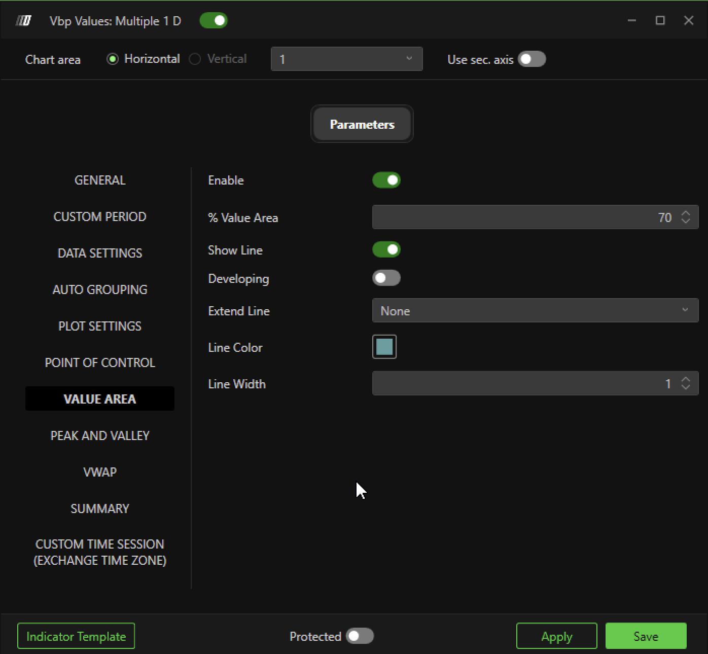 Adjusts the line thickness of the VWAP. Greater thickness makes the line moreù visible, making it easier to identify in the context of the chart.