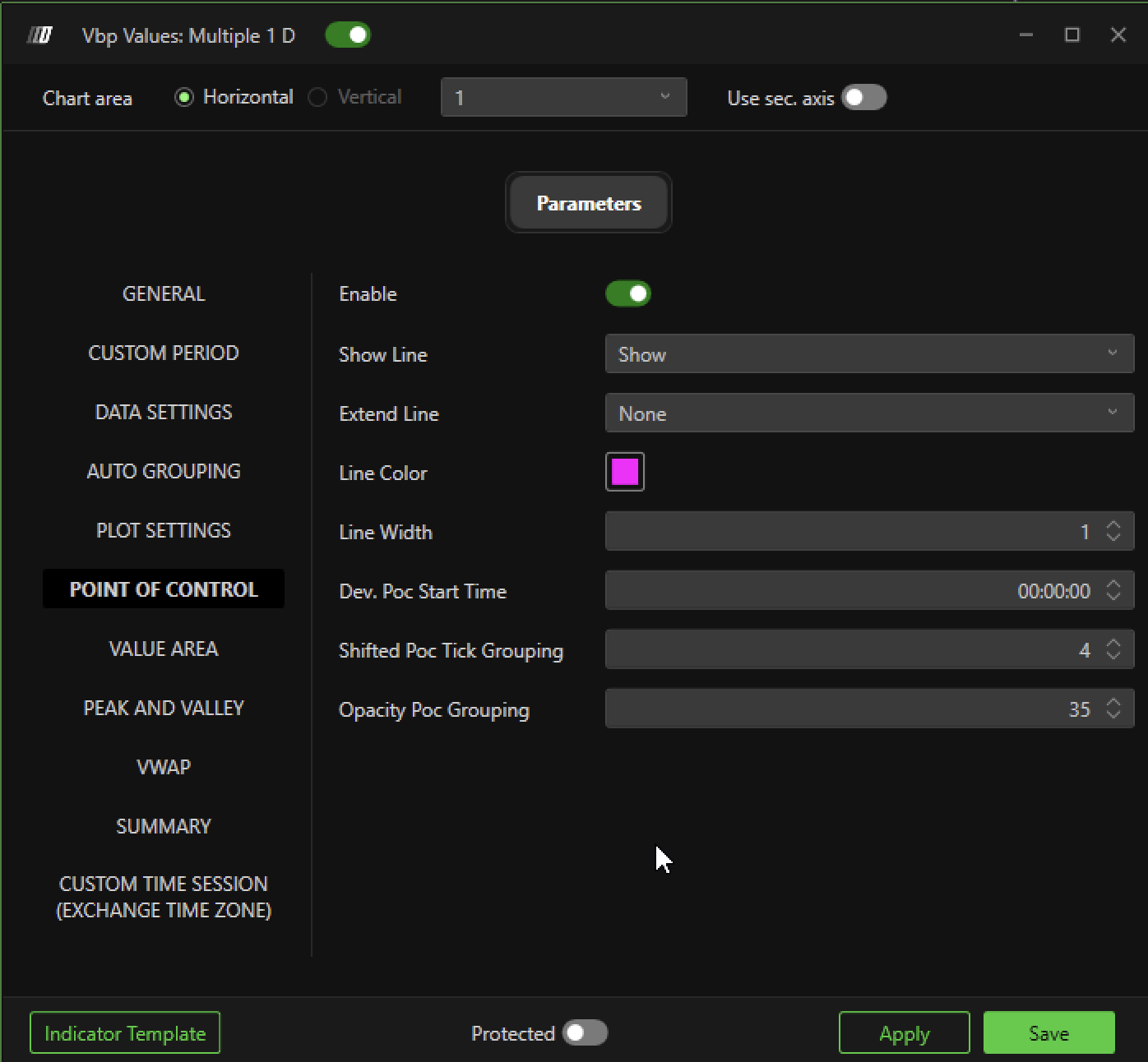 Enable the Developing VWAP, a dynamic version of the VWAP that updates in real time as new volumes are traded by plotting the developing line on the chart.