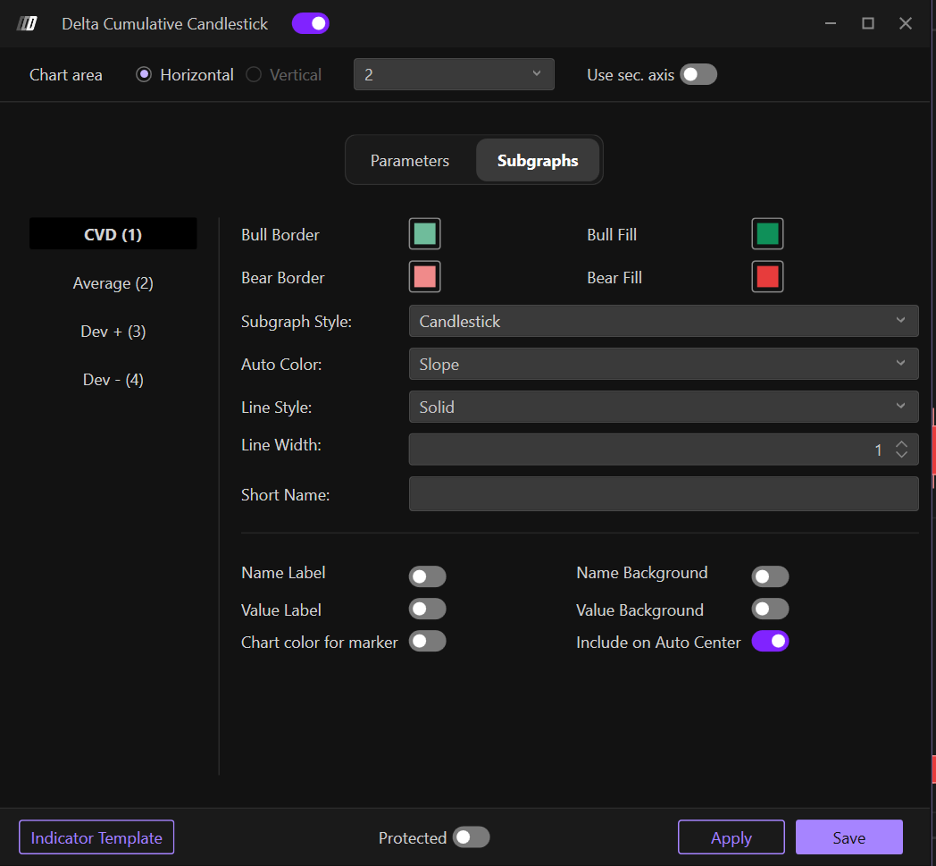 In this section you can define the visual appearance of the delta cumulative candlestick indicator: