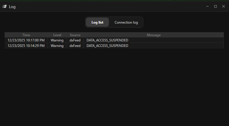 Error: Dxfeed: DATA_ACCESS_SUSPENDED