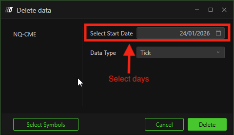 Choose the symbol you want to delete data for