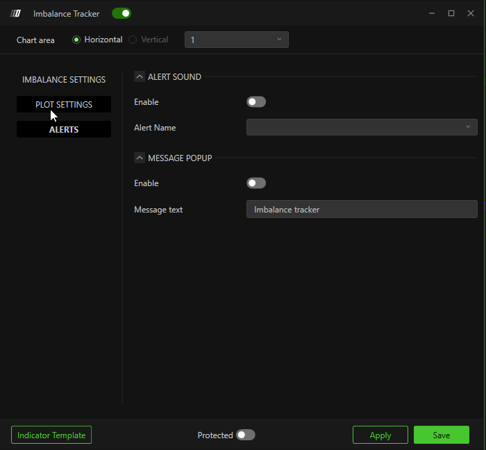 - Enable: This option enables or disables sound/Popup notification for the indicator. When enabled, an audible notification is issued whenever an event defined by the imbalance