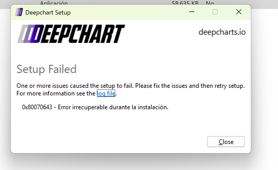 Some users may encounter an “Installation Setup Failed” error while installing DeepChart on Windows. This usually happens because required system components are missing or incompatible.