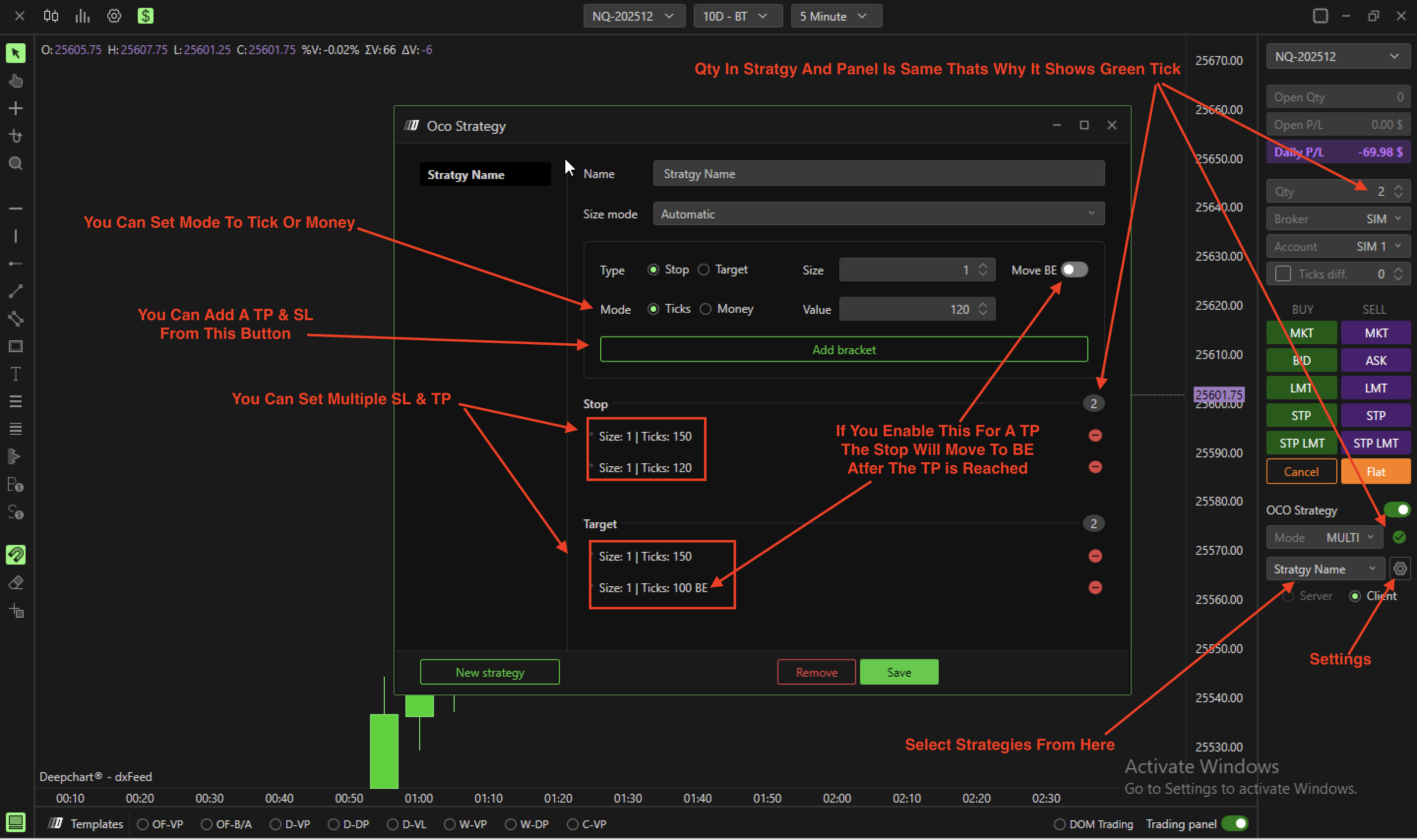 Set Ticks/Money in SL Ticks/Money and TP Ticks/Money.