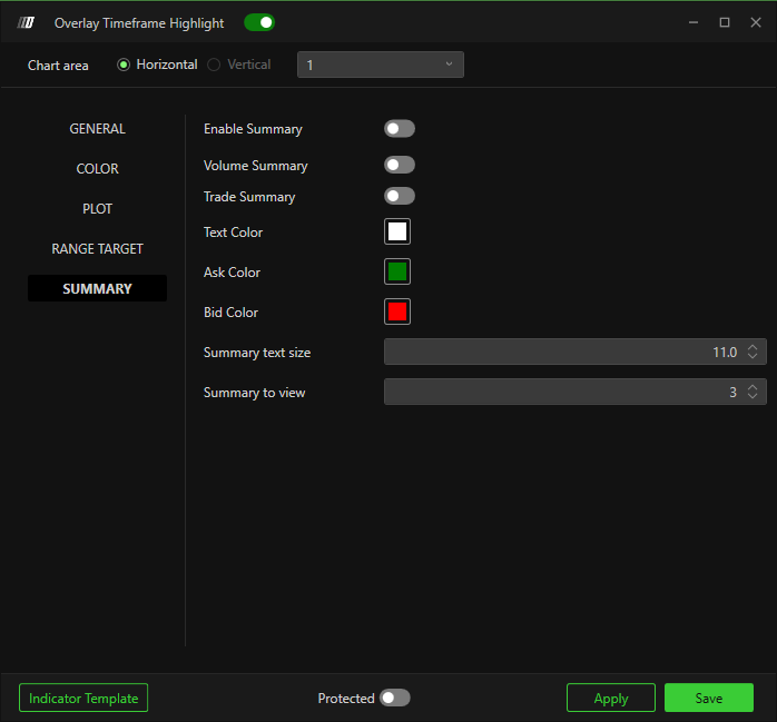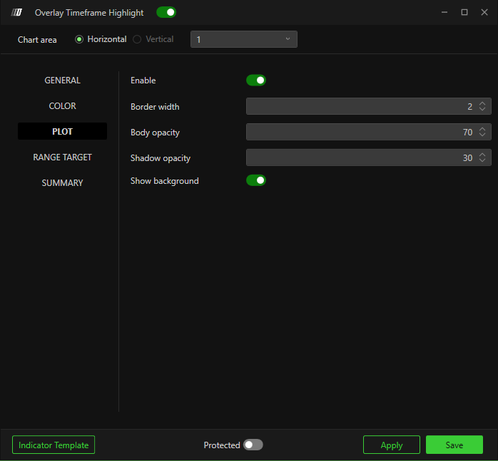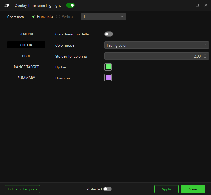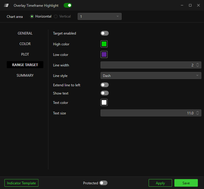 Panel selector – Selects which chart panel the overlay appears in.