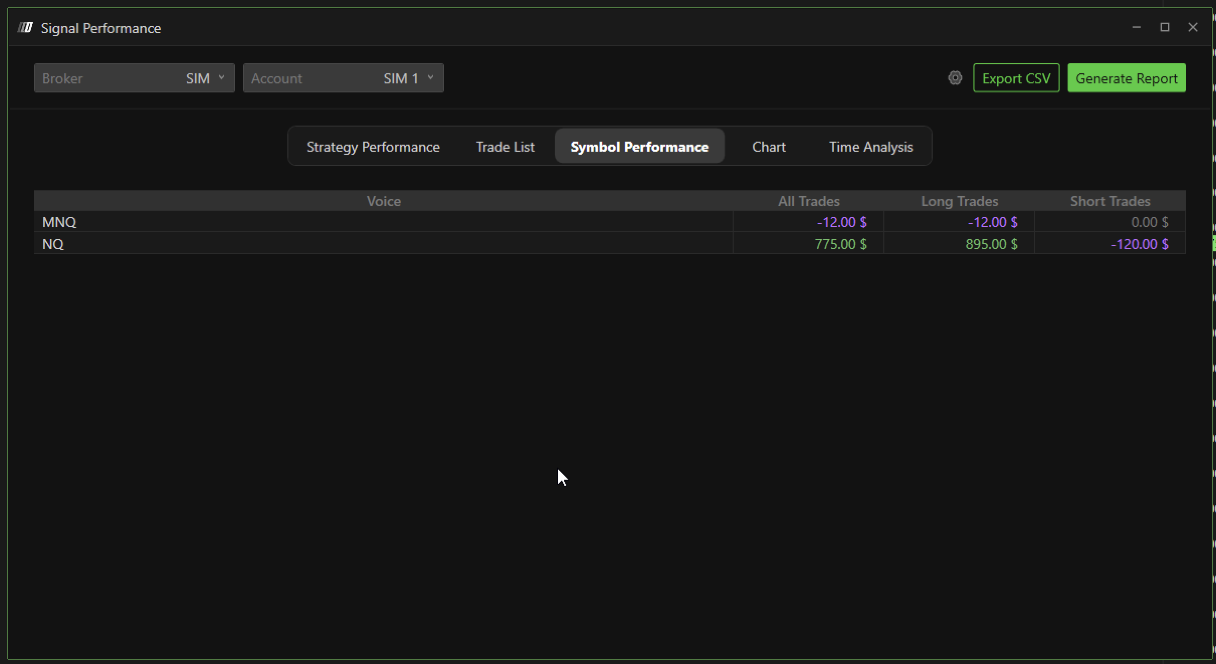 Displays the balance per symbol traded during the selected period, helping you identify the most and least profitable instruments.