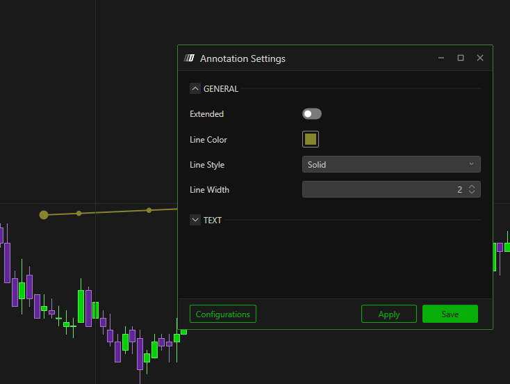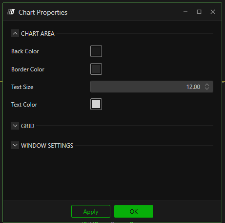 This is where you can set styles for the candles. You may change the styles to: Line, Candlestick, OHLC, Hidden, and Candlebody.