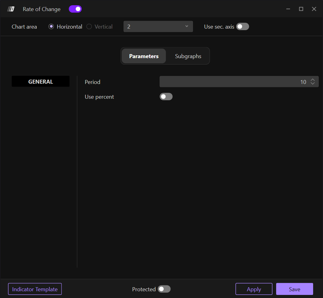 Clicking on the indicator settings icon will open its configuration window, within which you can make several choices regarding the indicator's functionality.