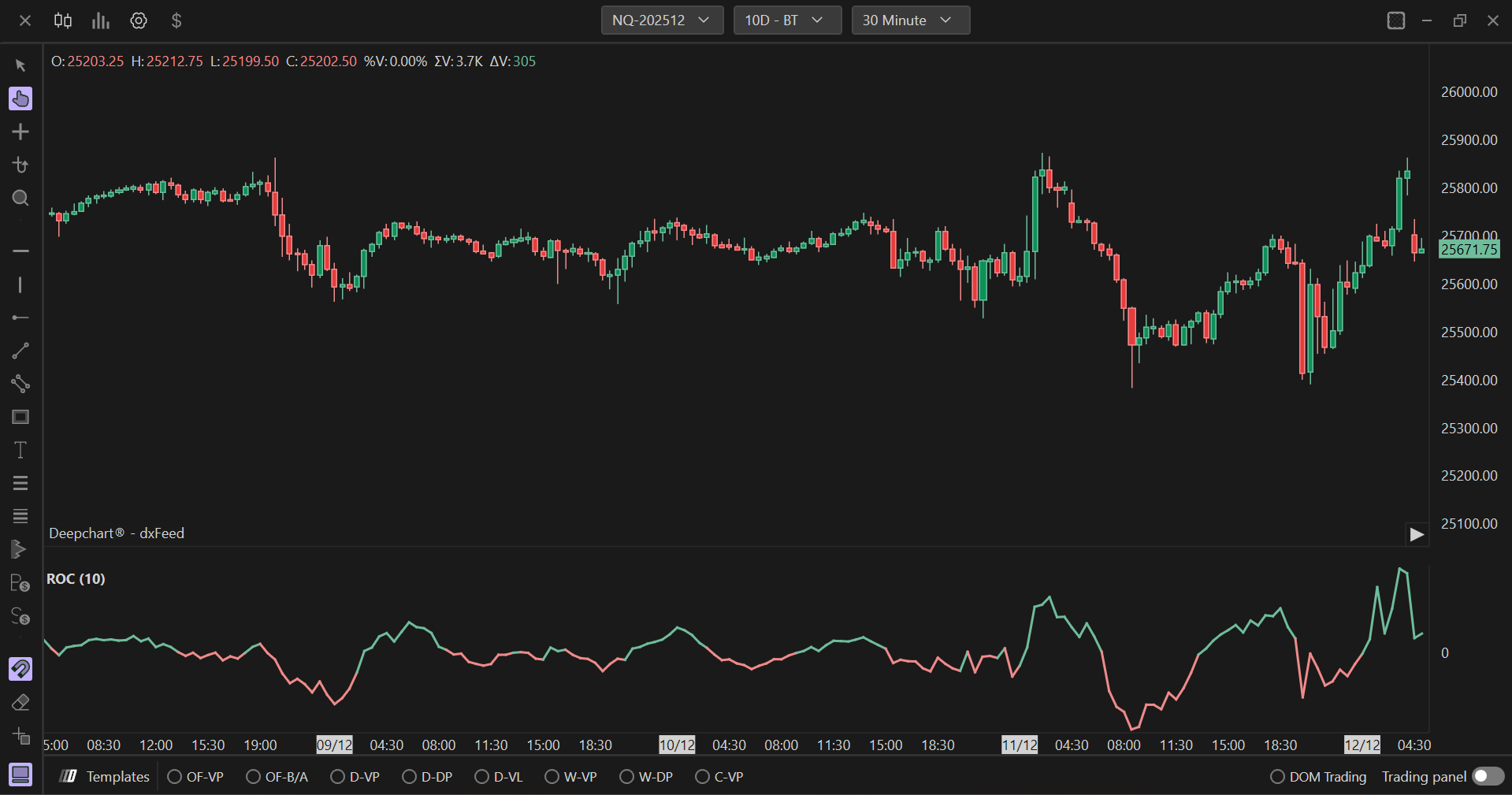The ROC (Rate of Change) indicator is a technical analysis indicator that measures the percentage of change in the price of an asset over a given period of time.
