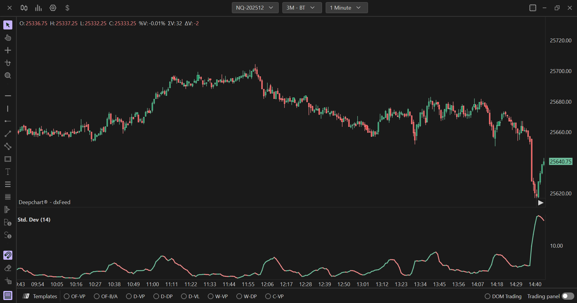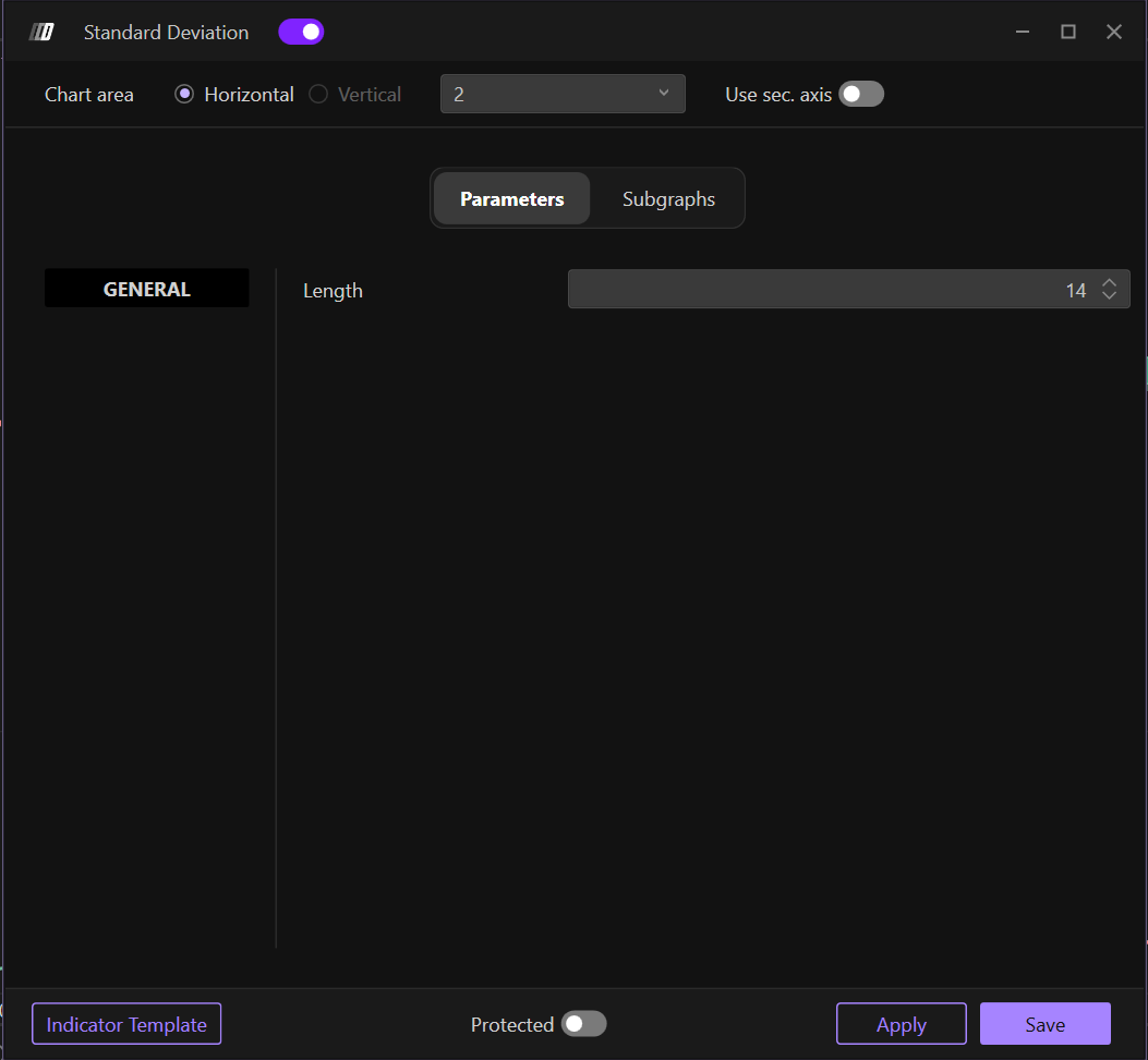 The Standard Deviation indicator measures the volatility of an asset's price relative to its average over a given period. It indicates how far price values deviate from the average itself on average: high values of standard deviation signal higher volatility (prices moving away from the average), while low values indicate lower volatility (prices staying closer to the average).